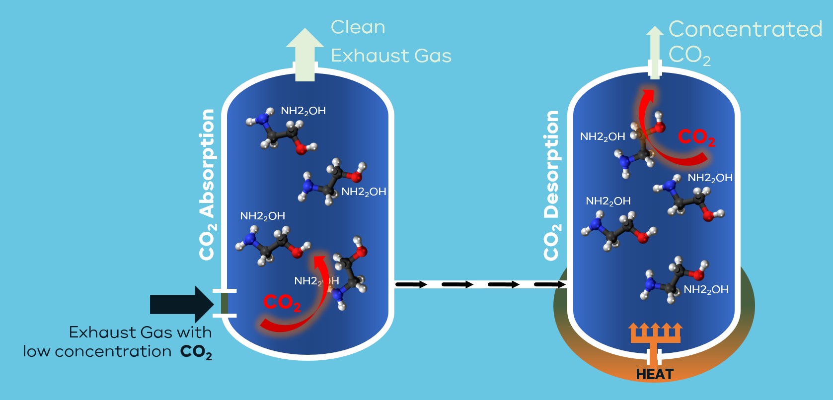 In just two steps the CO2 can be captured from exhaust gases.